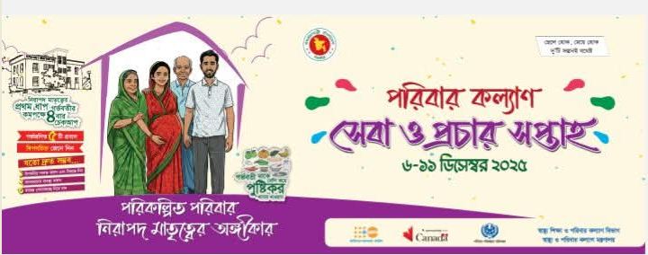 | ১ | পরিবার কল্যাণ সেবা ও প্রচার সপ্তাহ (০৬-১১ ডিসেম্বর/২০২৫) অনুষ্ঠিত হবে | | | ৩০-১১-২০২৫ | দেখুন |